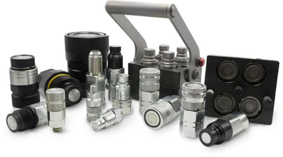 Hydraulic quick couplings designed to provide leak-free performance and minimize contamination in hydraulic systems. They feature a flat face design that allows for easy cleaning before connection, making them ideal for demanding applications in industries like construction, agriculture, and material handling.